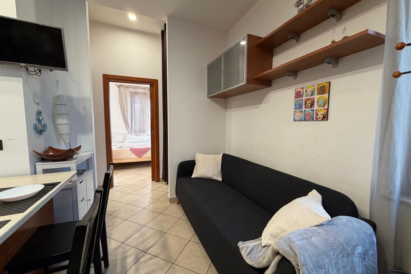 Completa la zona giorno un divano e una smart-tv.
