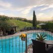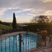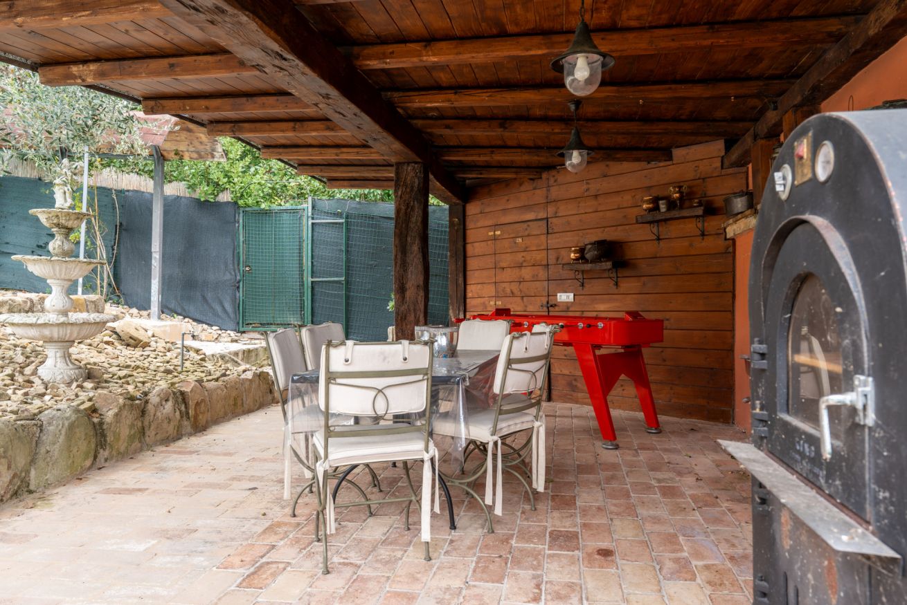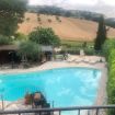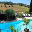 La piscina immersa nel verde della proprietà dona all'ospite un affaccio unico su le dolci colline tipiche della zona. Posizionata su un lato a pochi metri dalla casa è raggiungibile attraversando un percorso pedonale. Di forma irregolare con trampolino e un ingresso per facilitare l’ingresso in acqua. La sua profondità è da 1.40 a 2.40 m. L’area solarium che circonda interamente la piscina, misura circa 50 mq ed è arredata con lettini, sdraie ed un ombrellone. La piscina è aperta dalla prima settimana di maggio a metà ottobre.